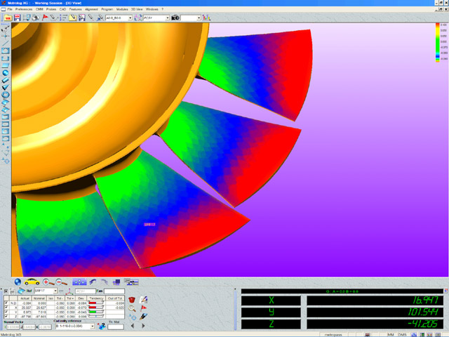 Screenshot einer Kontrollmessung gegen CAD-Datensatz mit der neuesten von uns eingesetzten Software Metrolog XG (Bild v. Hersteller)